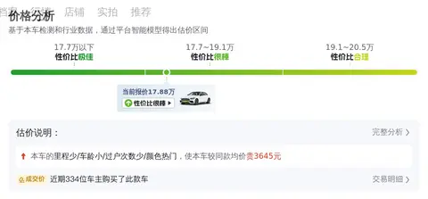 1、价格合适,这台车的新车含税价是35.53万,目前的二手车报价是17.88万,开两年多便宜了17.65万,里程少,正是入手的好时机。