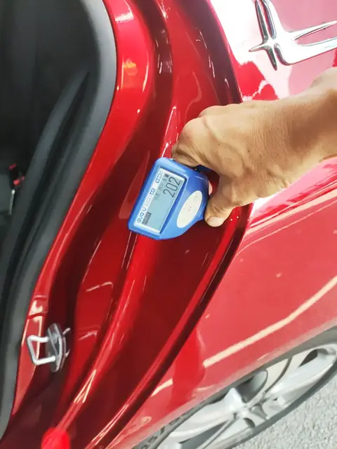 首先,在外观检测部分,经专业设备检测,整车在外观部分共有两处瑕疵,分别是左后翼子板和右后翼子板,瑕疵原因是因为剐蹭导致的喷漆修复。这里跟大家说一下,喷漆修复属于外观美容项目,不会影响车辆的安全性,严重时会影响车辆的美观,这点大家不用担心。