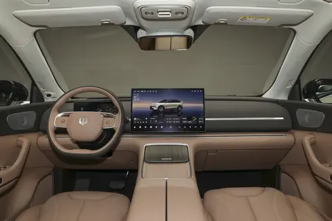 车内,环抱式座舱给人一种温馨、舒适的包裹感,门板内侧、中控屏下方采用大量环保软质皮革,搭配纹理清晰的深色实木饰板,质感不错。隐藏式的空调出风口,使车内看起来很简约。真皮的多功能方向盘,握感舒适,还配了加热的功能,这在我们北方小城很实用。中控台17.3英寸悬浮式中控大屏与 10.25英寸全液晶仪表盘的组合,简洁大方,操作便捷。内置高通骁龙8295芯片,运行 Leapmotor OS 系统,还搭载了 DeepSeek+通义千问双AI语音大模型,拥有强大的运算能力,实现了车机系统的迅速响应。不可开启的全景天窗配合电动遮阳帘,紫外线隔绝率达99.9%,视野通透还不晒。此外256色环绕式氛围灯、50W无线充电、21扬声器PSS音响系统支持杜比全景声,前排双层隔音玻璃、后排隐私玻璃、PM2.5过滤装置,AQS空气质量管理系统等,营造出愉悦的驾乘环境 。