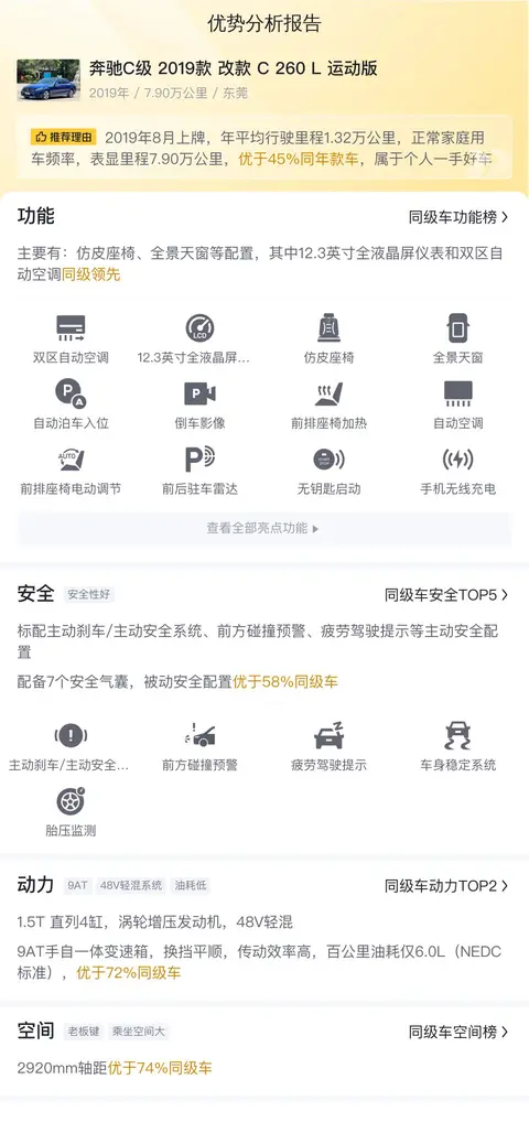 车型级别与类别:奔驰C级 2019款 改款 C 260 L 运动版