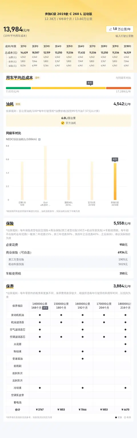 根据估算,这款车型的百公里油耗约为6升,按照每年行驶2万公里计算,每年的油费约为9600元。保险费用方面,每年约5400元,包括交强险、商业险等。保养费用方面,每年约2600元,具体费用视保养项目和频率而定。其他费用方面,每年约1000元,包括车船使用税、停车费、洗车费、过路费等。综上所述,这款车的年用车成本约为20,654元,实际费用可能因个人驾驶习惯、用车频率和地区差异而有所不同。