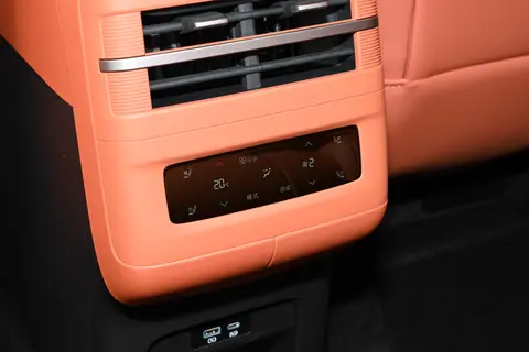 座椅采用2+3五座布局,全车电动调节、通风、加热统统标配,前排还带按摩功能。后排有独立空调控制屏,中央通道位置还配备了4.5升车载冷暖冰箱——夏天冰饮料、冬天热咖啡,实用度满分。更夸张的是,后排还可选装双12.95英寸拔插屏,配合20扬声器“迪声”音响系统,整车娱乐体验直接拉满。