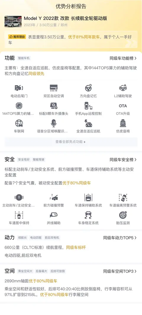 以上就是我们对二手Model Y 2022款 改款 长续航全轮驱动版的介绍,希望对您购车有所帮助。温馨提示:二手车不同于新车,在购买前一定要现场检验车辆的车况如何,确保自己满意再做决定哦。