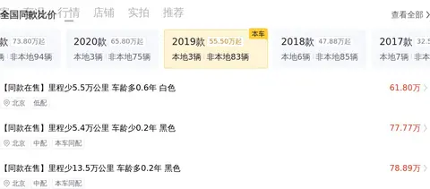 再往下,我们将为您展示一下与本车相同的二手车在全国的售价情况,辅助您判断该车售价是否合理。