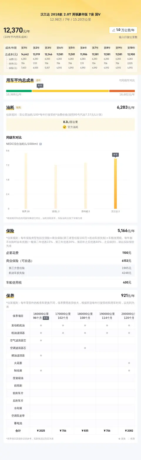除了市场行情,用车成本也是每个车主必须考虑的实际情况。接下来,我们将为您展示这辆车的用车成本分析情况。