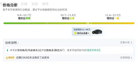 从该车的售价、里程、车龄、过户次数和颜色等方面分析,影响该车售价的主要因素有里程和车龄,该车里程多于均值0.8万公里,车龄多于均值0.3年。