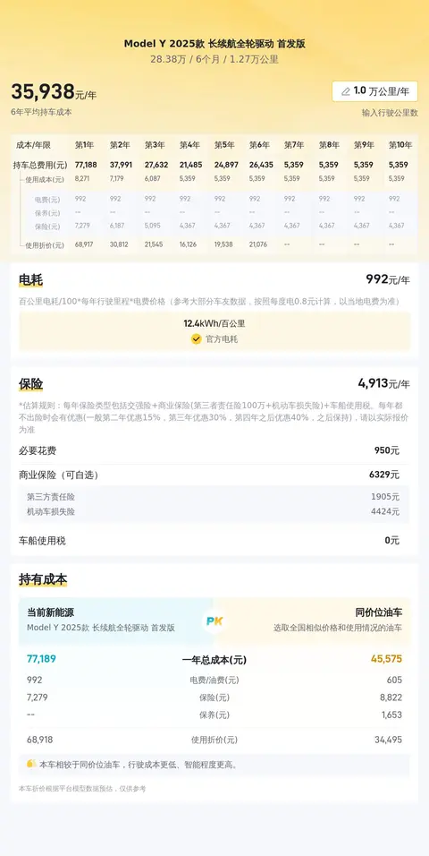 根据懂车帝的数据分析,这辆Model Y的售价在市场中处于较为合理的价格区间。此外,其较低的用车成本和较高的保值率,也为买家提供了更多的价值。