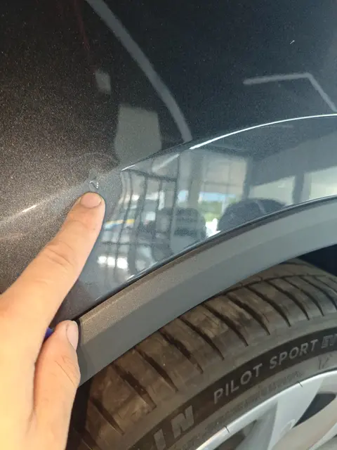 我们对这辆Model Y进行了全面的外观检测,发现其外观状况良好,仅有轻微瑕疵。具体为右后翼子板略有变形,但不影响美观和使用。