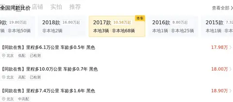 途锐 2017款 3.0TSI 拓界版,新车含税价为74.03万,现在的二手车报价是23.98万,2018年7月首次上牌,在此期间过户1次。