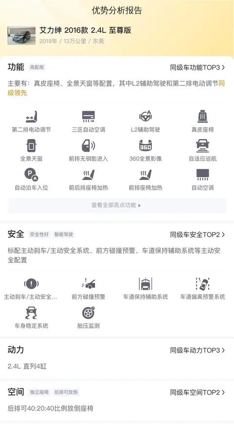 优势:价格实惠,配置实用。真皮座椅、电动调节座椅、全景天窗等配置让整车更具豪华感。空间宽敞,适合大家庭使用。动力充沛,油耗合理,保值率高。