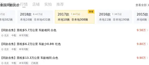 最后说一下大家买二手车时候都会考虑的一个点,那就是这辆车的价格了。在二手车市场,车辆的最终售价会受很多综合因素影响,像车龄、里程、保养状态等。而咱们今天说的这辆车的车龄偏高,所以价格上浮,但因为它的里程少于均值,所以价格又略低于同年款车。而至于具体价格,还是那句话,要看整车的车况表现如何。