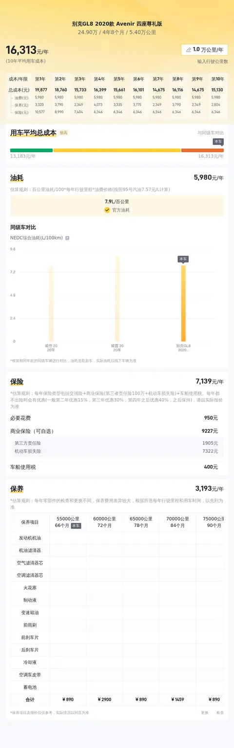 根据懂车帝大数据分析,这辆车的当前售价处于中等水平,考虑到其较短的车龄和较少的行驶里程,这辆车性价比较高。这辆车目前售价24.9万,预计再行驶2年后可卖18万,约折价26.6%,保值率较高。关于用车成本,这辆车的官方百公里油耗为7.9升,按照每年行驶一万公里里程计算,燃油费用约为6663元,年保养费用大约4683元,年保险费用大约5389元,平均年度用车总成本约16735元,用车成本适中。