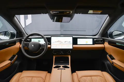 家用车的内饰设计,需要在美观与实用之间找到平衡。零跑 C01 2024 款增程式 216 尊享版内饰提供了礁灰 + 天青、礁灰 + 驼绒棕两种配色方案。小王选择了礁灰 + 驼绒棕的搭配,这种配色既营造出了温馨舒适的驾乘氛围,又具备较好的耐脏性。座椅采用了皮质面料,触感柔软细腻,坐上去十分舒适。中控台搭载了一块 14.6 英寸 2.5K 高清悬浮屏,分辨率高达 2560×1440,不仅支持触屏操作,还能通过语音控制空调等功能,操作便捷流畅。方向盘采用了双辐设计,哑光黑的按键不易留下指纹,握感扎实,给人一种精致且实用的感觉。