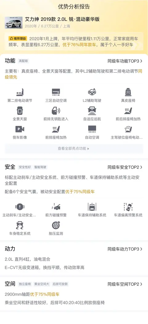 综上所述的新车含税价、用车成本、市场行情、优势分析、同款比价等数据仅供参考。在配置部分,因为二手车非标品,车辆可能会存在配置改装的情况,具体车况信息需要线下结合车辆实际情况进行综合参考。