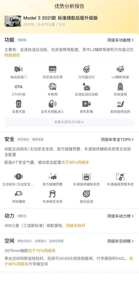 综上所述,这辆二手Model 3 2021款 标准续航后驱升级版凭借其先进的自动驾驶技术、丰富的配置、合理的用车成本以及较高的市场认可度,是一款性价比较高的电动汽车。它适合追求科技感、注重环保和节能的消费者群体,无论是城市通勤还是长途驾驶,都能提供出色的驾驶体验。然而,购买二手车时需注意车辆的实际状况、市场动态以及个人需求与预算的匹配度。希望这篇文章能在您选购车辆时提供有价值的参考。