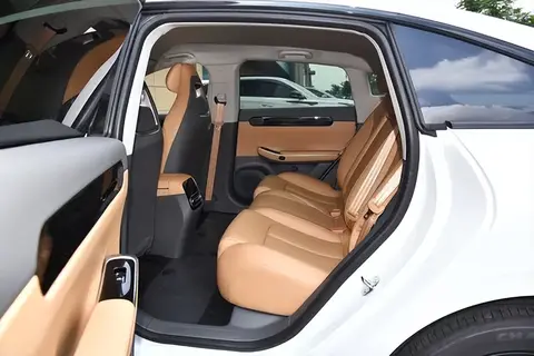 从侧面看,5050mm的车长以及2930mm的轴距造就了优雅的车身比例。整车采用略带溜背的造型,但后排头部空间并未因此压缩。隐藏式门把手配合流畅的车身腰线,增强了一体感。无框车门也是亮点,既显得高级,也减少了风噪的侵扰。车门开口角度很大,特别适合有老人或小孩的家庭成员上下车。而大尺寸车身在视觉上也拉高了这款车的“存在感”,实际与C级豪华车无异。