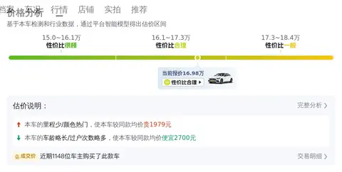 当前市场行情:二手车报价范围约15.75万至19.15万元