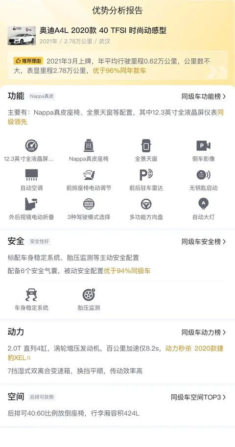 综上所述的新车含税价、用车成本、市场行情、优势分析、同款比价等数据仅供参考。在配置部分,因为二手车非标品,车辆可能会存在配置改装的情况,具体车况信息需要线下结合车辆实际情况进行综合参考。