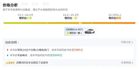 根据大数据分析,该车当前的售价在14.07万至17.18万之间,具体的售价因车辆的车龄、里程、过户次数等因素而有所不同。关于用车成本方面,根据估算,这辆车的年均综合用车成本约1.4万元左右。具体金额根据用车强度和环境等因素有所改变。
