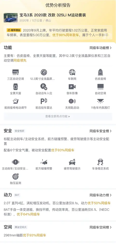今天给大家带来的这台宝马3系2020款改款325Li M运动套装,上牌地车源地均在广东佛山,上牌日期2020年09月,表显里程5万公里,新车指导价34.69万,二手车报价15.48万,过户次数0次。支持分期购车,首付最低4.61万即可入手这台宝马3系。
