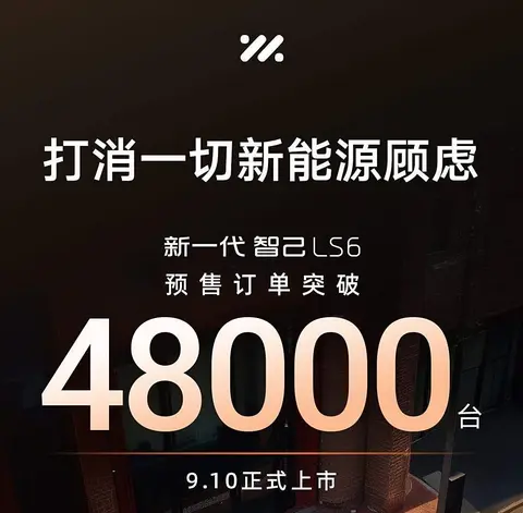 公开信息显示,8月15日新一代智己LS6正式开启预售,预售权益价为20.99万-27.99万元。8月29日,在成都车展期间,官方公布截止8月29日新一代智己LS6的订单量已突破4.8万台。