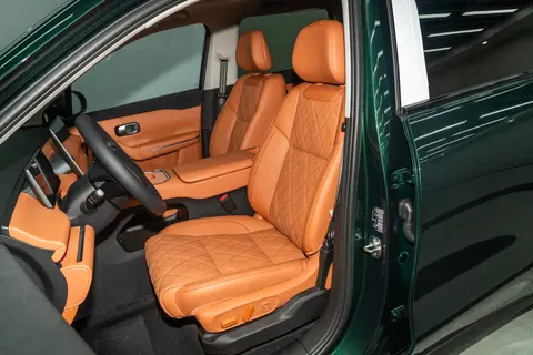 五座车型的空间会更为宽敞,二排座椅上有961mm的腿部空间和345mm的坐姿高度,高个头的男生坐下都有足够的活动空间,而且二排座椅具有500mm的滑轨长度,可移动180mm,前移最大行程为150mm,靠背也能放平到最大140°的躺椅角度,比较特别的是,前排座椅的头枕可手动拔出,放倒后与二排座椅就能形成舒适的单人床,比较简单,适合午休、长途旅行时使用,在露营时则能将后排座椅完全放倒,铺上充气垫与后备箱形成2米大床,用途很多样化,与增程式车型相同,车内的舒适性功能也配置齐全。
