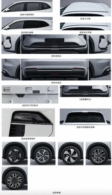 根据申报信息,用户可以根据自己的喜好和需求,选择不同样式的轮辋(提供18英寸和19英寸可选)、车窗装饰条、隐私玻璃以及前后雷达等配置。