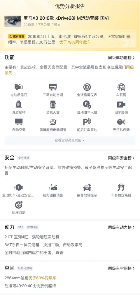 这辆宝马X3的10年平均用车成本约为15483元/年,与同级别车相比处于适中区间,综合性价比不错。