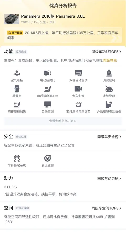 综上所述的新车含税价、用车成本、市场行情、优势分析、同款比价等数据仅供参考。在配置部分,因为二手车非标品,车辆可能会存在配置改装的情况,具体车况信息需要线下结合车辆实际情况进行综合参考。