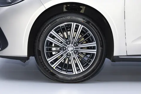 车身侧面,吉利银河星耀6采用溜背式造型,车身带有双腰线设计,上方腰线贯穿整个车身,下方腰线与银河星耀8类似,营造出俯冲的视觉效果。实拍车型配备17英寸五辐式轮辋,此外新车还提供16英寸可选。此外,新车还搭载传统样式车门把手、车身同色外后视镜壳等配置。