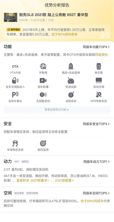车是好车,价格也得合适,接下来咱们聊聊市场行情和用车成本。别克GL8 2021款 陆上公务舱 652T 豪华型的二手车行情在15.65万至18.97万之间,具体售价因车况而有所不同。这台车的售价14.98万,低于全国相似车型成交均价,车况正常情况下性价比不错。当然,具体的车子状况,还需要大家实地考察。