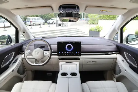 座椅布局仍为2+2+3七座设计,顶配车型第二排配备双零重力座椅,支持AI自适应腰部支撑及26点按摩功能。三排座椅均标配加热与通风,第二排额外提供扶手加热、腿托加热及6英寸控制屏。娱乐系统方面,全系标配17.3英寸3K后排吸顶屏、13升车载冷暖冰箱及50瓦无线充电,高配车型还搭载22扬声器音响系统。