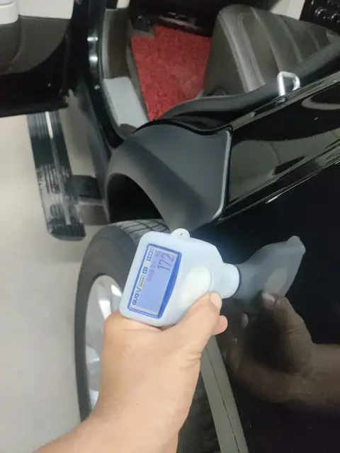 车辆外观重要覆件没有钣金喷漆修复,仅有两处翼子板修复,扣5分,精洗后油漆光泽度良好,可增加车辆美观性,不影响车辆正常使用。具体瑕疵项为:
