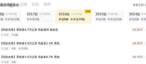 车源地和上牌地都在上海。2017年09月首次上牌,在此期间过户1次。新车含税价为86.00万,现在的二手车报价是15.98万,相当于开近8年便宜了70万。