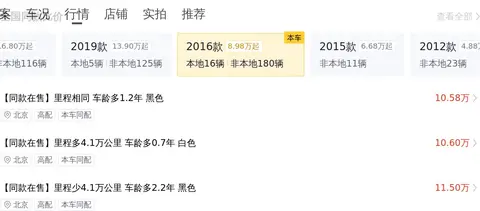 购买二手车不仅要考虑车价,还要考虑市场的接受程度和用车成本。目前,这款车的市场行情价为11.68-14.67万,它的报价则为11.68万,报价较低,是一个不错的选择。在用车成本方面,这辆车的年均综合用车成本为14644元/年,与同级别车相比适中。具体费用包括每年油费约6161元/年,保险费用约5150元/年,保养费用约334元/年。