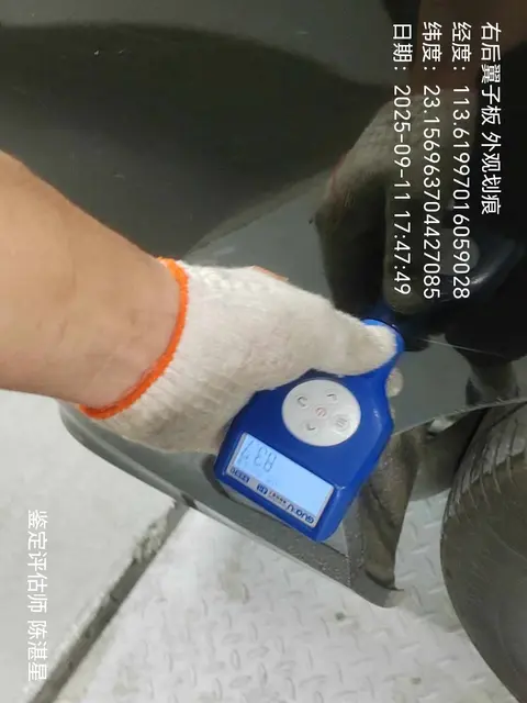 经过对汽车主要覆盖件检测,有1项问题需注意,具体是划痕:右后翼子板,这个属于正常使用造成的,无伤大雅。