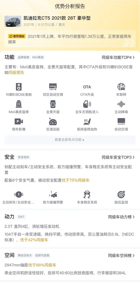 综上所述的新车含税价、用车成本、市场行情、优势分析、同款比价等数据仅供参考。在配置部分,因为二手车非标品,车辆可能会存在配置改装的情况,具体车况信息需要线下结合车辆实际情况进行综合参考。