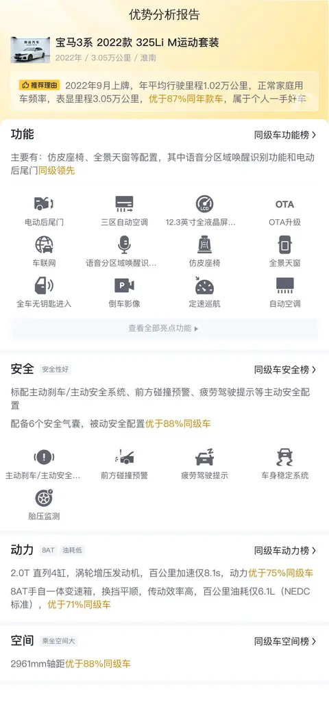 综上所述的新车含税价、用车成本、市场行情、优势分析、同款比价等数据仅供参考。在配置部分,因为二手车非标品,车辆可能会存在配置改装的情况,具体车况信息需要线下结合车辆实际情况进行综合参考。