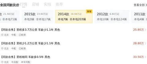 该车为黑色车身,浅色内饰,车源地为揭阳,上牌地是揭阳。2014年5月首次上牌,期间过户4次。近11年行驶里程为13万公里,该车符合国IV排放标准。新车含税指导价为155.69万,目前二手车报价为26.48万。