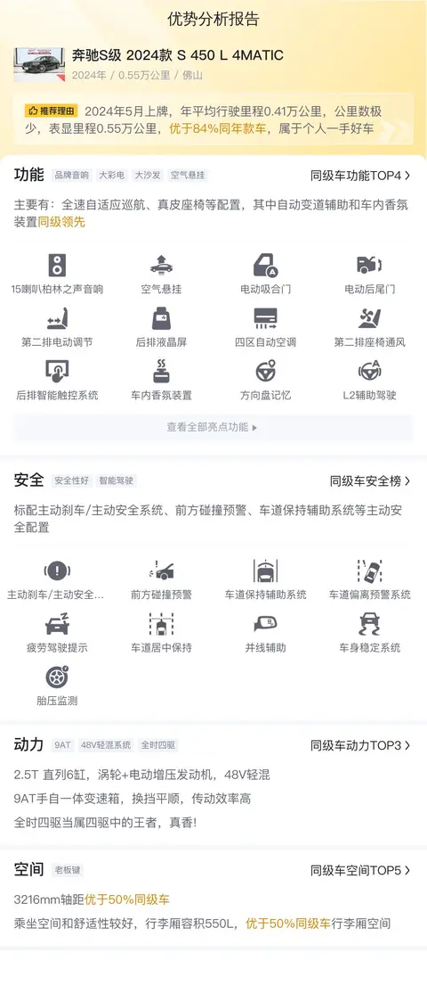 综上所述的新车含税价、用车成本、市场行情、优势分析、同款比价等数据仅供参考。在配置部分,因为二手车非标品,车辆可能会存在配置改装的情况,具体车况信息需要线下结合车辆实际情况进行综合参考。