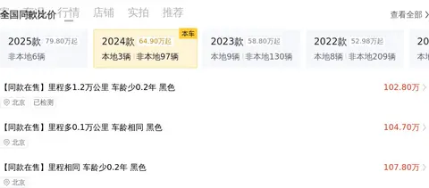 根据当前市场行情显示,这款车型的二手车价格区间在88.74万至108.65万之间。而本文介绍的这款准新车报价为104.63万,虽然价格偏高,但考虑到车况、里程数及车辆品质等因素,这一价格仍属合理范畴。此外,根据数据显示,这款车型在未来三年内的贬值幅度相对较小,保值率较高。