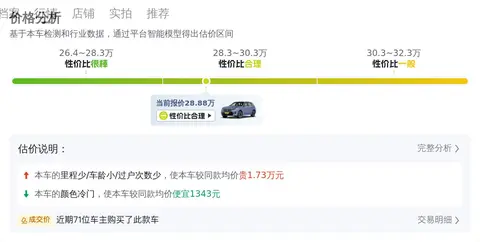 根据大数据预估显示,这款车的二手车价格在28.88万至34.57万之间。具体的价格因车辆的车龄、里程、保养等因素而有所不同。从市场行情来看,这辆车的售价属于正常范围之内,但也是合理区间内的比较低的价格了,这与车辆本身良好的车况有直接关系,至于到底值不值,只有买回家自己心里有数。