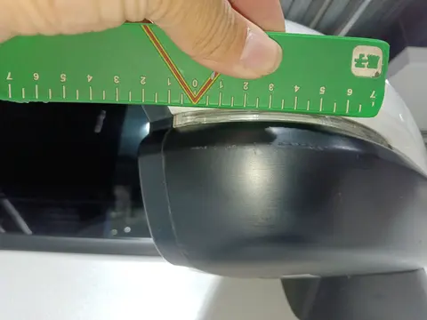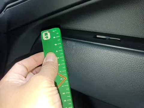 在外观检测中,这辆车在右后视镜处有剐蹭的状况,四门内饰板有划痕。