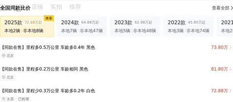当前市场行情显示,这款车型的二手车价格大约在79.98万至98.37万元之间。当然,具体的售价还会受到车辆状况等因素的影响。关于用车成本方面,我们对这款车在全国的保有量及其近半年的销量进行了统计和分析,并与同级别车进行了对比,为您提供了一些数据参考,希望对您有所帮助。