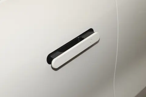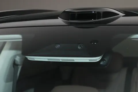 最让我意外的是车顶的 128 线激光雷达,一般这种配置很容易破坏车身的流畅感,但这款车处理得很好,反而成了科技感的亮点,不突兀还实用。车身侧面用了双色涂装,营造出悬浮式车顶的效果,搭配 20 英寸的轮圈和前四活塞绿色卡钳,既有家用车的稳重,又带点运动感。无框车门和隐藏式门把手这些细节,也能看出它在营造高端感上的用心。