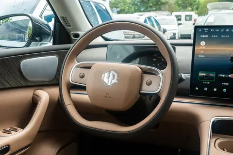 智能座舱方面,车内三块大屏很显眼:10.25 英寸液晶仪表、17.3 英寸 2.8K 中控屏,还有 60 英寸 AR-HUD 抬头显示。液晶仪表能清晰显示车速、续航等信息,一目了然;中控屏分辨率高、屏幕大,看视频、操作车机都很流畅;AR-HUD 能把导航、车速等信息投射到前挡风玻璃上,开车不用低头看仪表盘,视线始终在前方,更安全。
