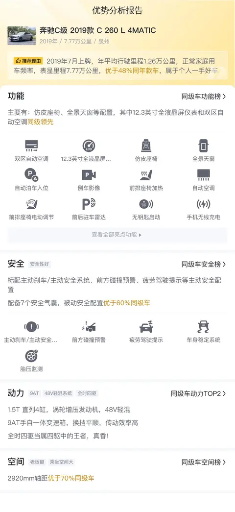 综上所述的新车含税价、用车成本、市场行情、优势分析、同款比价等数据仅供参考。在配置部分,因为二手车非标品,车辆可能会存在配置改装的情况,具体车况信息需要线下结合车辆实际情况进行综合参考。