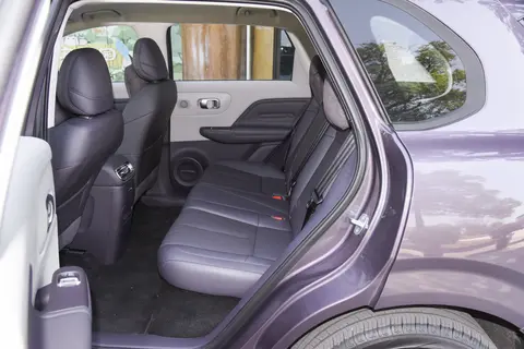 零跑B10的车身尺寸为4515×1885×1655mm,轴距达2735mm,在紧凑型SUV中处于中上水平,通过87.4%的得房率,确保了宽敞的内部空间。前排头部空间达980mm,即便身高1.9米的乘客乘坐,头部也能保留一拳左右的余量;后排头部空间960mm,腿部空间最大可达920mm,身高1.8米乘客乘坐时,腿部能轻松放下,膝盖与前排座椅靠背之间还有两拳左右的距离,头部无压抑感。后排地板纯平设计,中间乘客的脚部无需蜷缩,三人乘坐时互不干扰,适合家庭带娃或长途旅行。