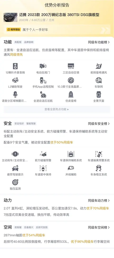 不管买新车还是二手车,大家都会货比三家,生怕自己买的不如别人买的合适,所以我们梳理了一下这辆车的综合表现,希望帮到您。