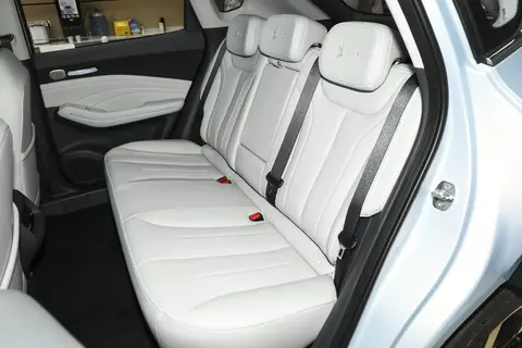 虽然两款车的轴距都是2750mm,但实际空间体验却不一样。吉利银河E5的车身高度是1670mm,头部空间很充裕,坐进去头部能有两指的余量,就算是高个子也不会觉得压抑。